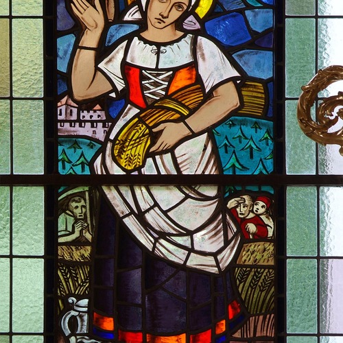 Das Hochkreuz stammt ebenfalls aus dem 18. Jahrhundert, ein lebensgroßer Christus, zu Füßen einen Totenschädel als Sinnbild dafür, dass unser Erlöser den Tod überwunden hat.